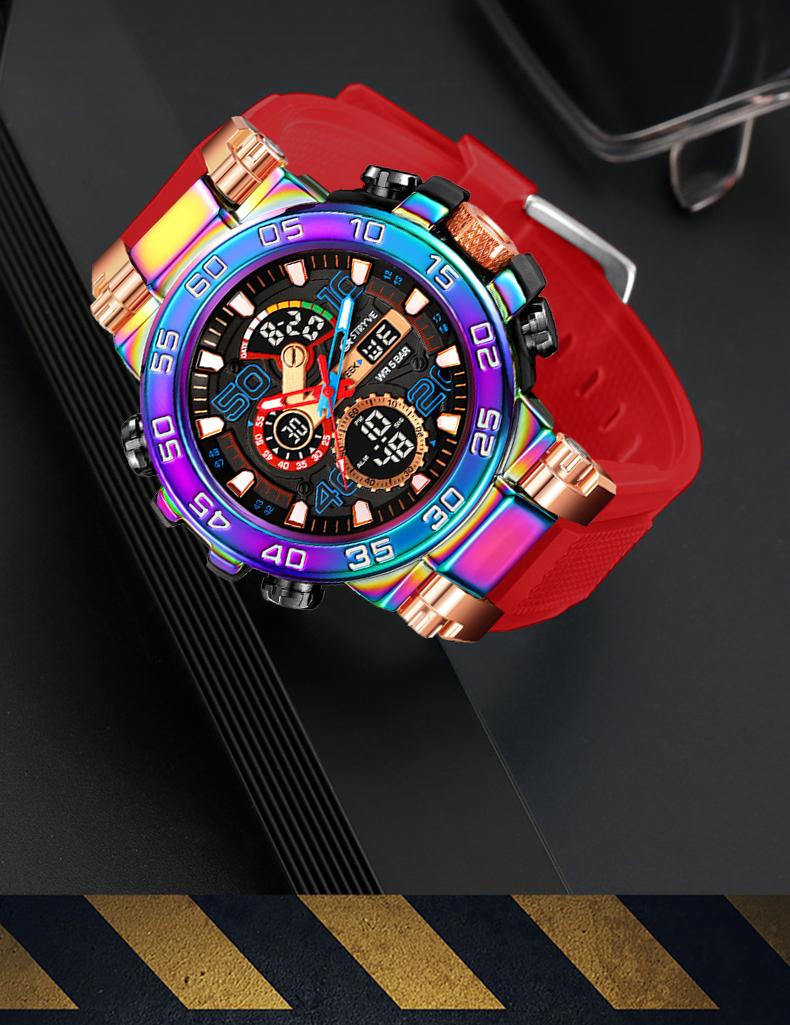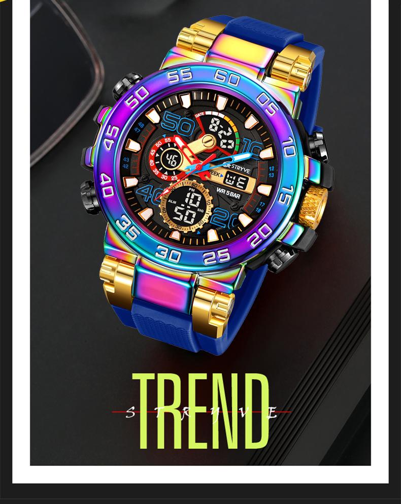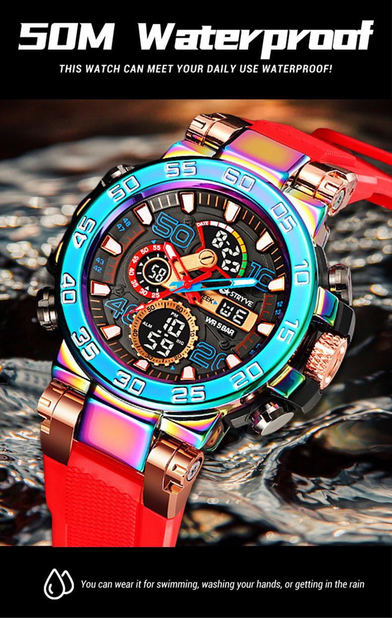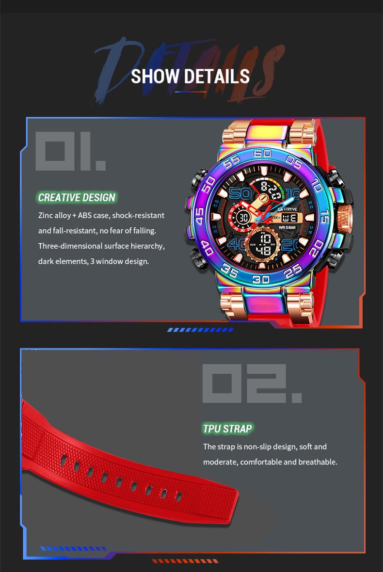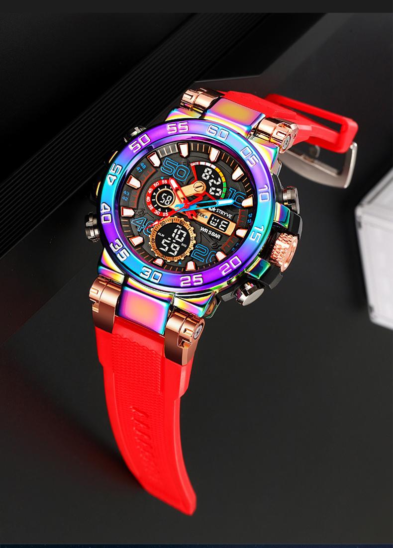 - Features: Colorful punk style Multi-functional dual display Waterproof Trendy fashion sport watch Birthday gift with gift box