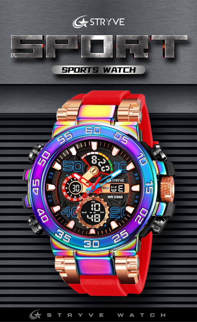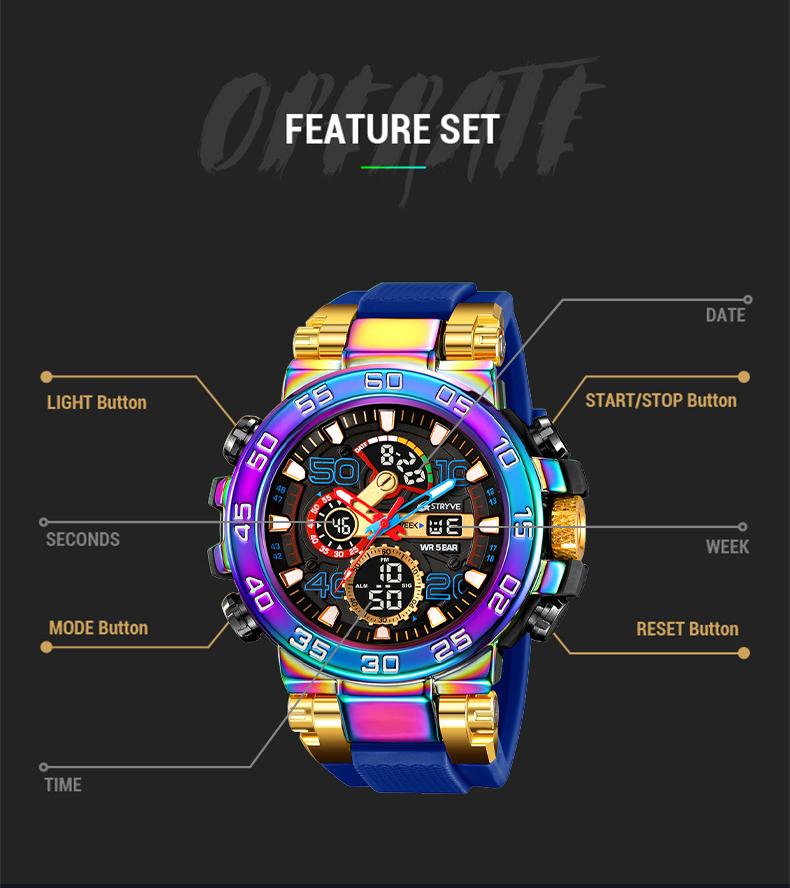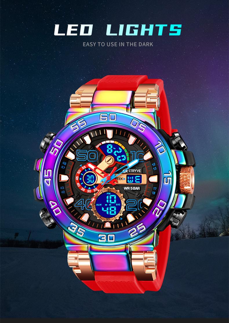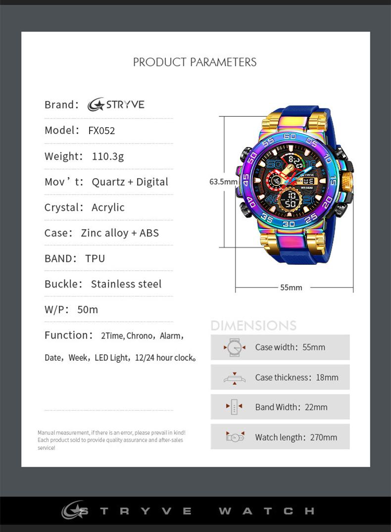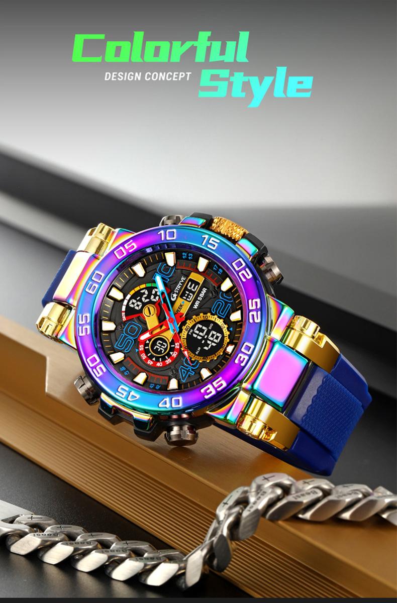 - Features: Colorful punk style Multi-functional dual display Waterproof Trendy fashion sport watch Birthday gift with gift box
