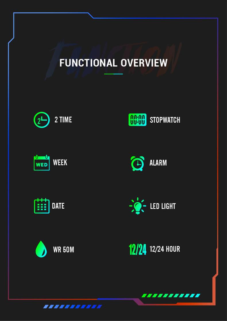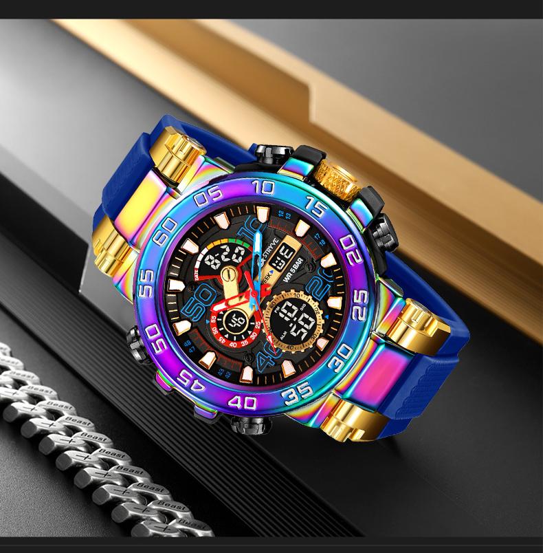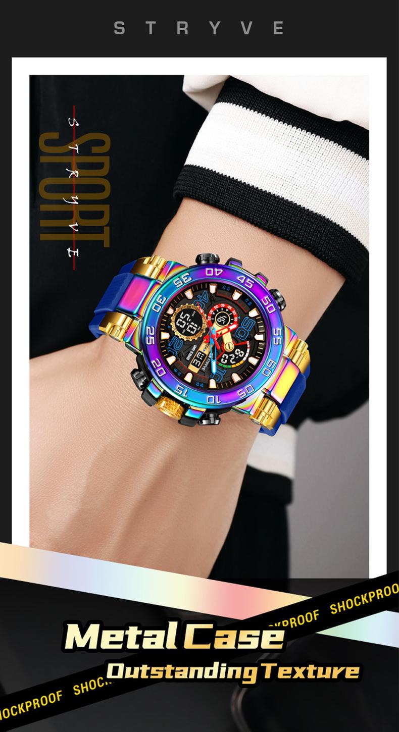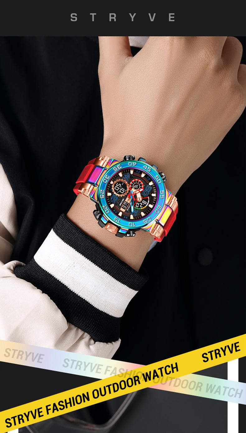 - Features: Colorful punk style Multi-functional dual display Waterproof Trendy fashion sport watch Birthday gift with gift box
