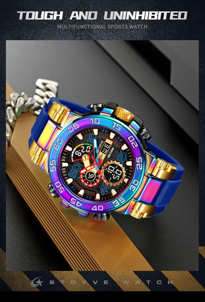 - Stylish and Functional: This men's watch features a colorful punk style, making it a trendy fashion accessory. It is multi-functional, offering a dual display for added convenience. 🌟